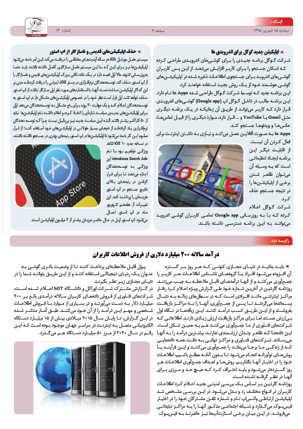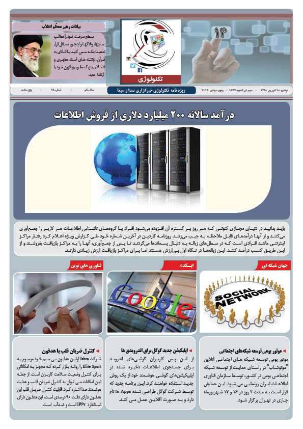 ویژه نامه شماره 14 تکنولوژی با موضوعات جهان شبکه ای، اپکده، فناوری های نوین، پرونده امنیت، دانشکده، زاویه دید و پیکسل منتشر شد.