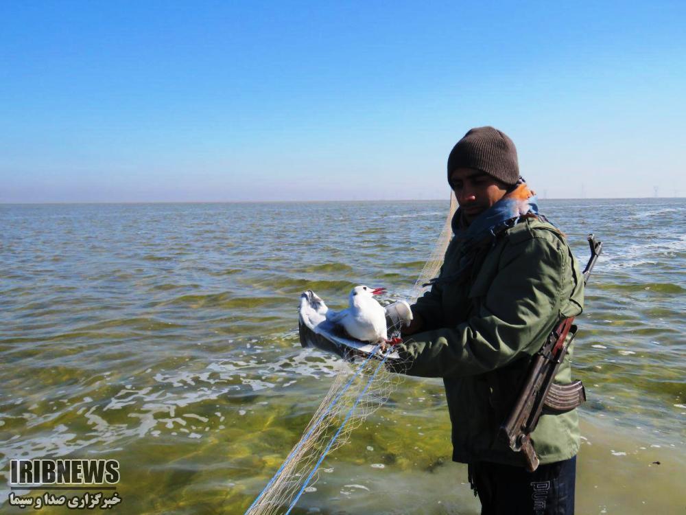 جمع آوری تورهای هوایی زنده گیری پرندگان مهاجر در تالاب شادگان