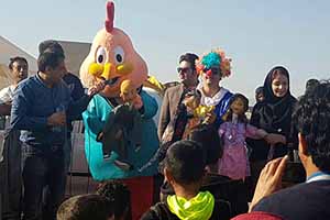 به گزارش خبرگزاری صدا و سیما به نقل از روابط عمومی جشنواره تئاترکودک همدان، عروسک‌گردانان این نمایش تلاش کردند با خواندن شعر‌های محلی کودکان زلزله زده سرپل ذهاب را شاد کنند.
