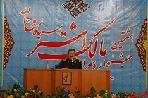 وی به قرائت بخشي از پيام فرمانده كل سپاه پاسداران به جشنواره مالك اشتر پرداخت و گفت : در اين پيام به ديدار سال گذشته منتخبان اين جشنواره با رهبرمعظم انقلاب اشاره و ابراز خرسندي و رضايت ايشان از برگزاري جشنواره مالك اشتر كه باعث عمق بخشيدن  و حركت پيش رونده نيروهاي مسلح مي شود و تاييدي برمسير پيش روي مجريان و تاكيدي بر استمراراين مسيرمبارك است .