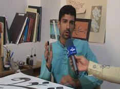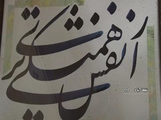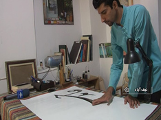 هنرمند نجف آبادی سی تابلو خط نستعلیق با انگشت به جای قلم نگارش کرده است.