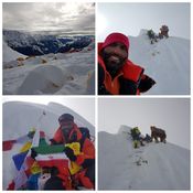 وی از ارتفاع ۷۴۰۰متری به قصد صعود به قله ۸۱۶۳ متری در هوای سرد و بوران منطقه با استفاده از یک کپسول اکسیژن حرکت کرد و حدود ساعت۹ صبح بر فراز قله ایستاد.