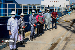 خدمه کشتی ها و کادر اداره بندر و دریانوردی خرمشهر نیز در حرکتی نمادین رعایت فاصله گذاری اجتماعی را به نمایش گذاشتند که در پی این حرکت مدیران بندر خرمشهر ، با اهدای شاخه های گل از زحمات آنان قدردانی کردند.