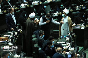گروه عکس خبرگزرای صدا وسیما؛ نمایندگان در نشست علنی امروز مجلس شورای اسلامی، در جریان بررسی بخش درآمدی لایحه بودجه سال ۱۴۰۰، ردیف (۳) تبصره (۲) را به تصویب رساندند که بر اساس آن؛ بدهی دولت به بخشهای خصوصی و تعاونی و نهادهای عمومی غیردولتی از محل واگذاری اموال و داراییهای متعلق به دولت و مؤسسات و شرکتهای دولتی به استثنای موارد مصادیق مندرج در اصل هشتاد و سوم (۸۳) قانون اساسی و مشمول واگذاری موضوع قانون اجرای سیاستهای کلی اصل چهلوچهارم (۴۴) قانون اساسی از طریق جدول شماره ۱۸ (توزیع اعتبارات موضوع واگذاری سهام و سهمالشرکه دولت) این قانون قابل پرداخت است.
