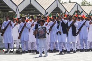 مراسم رژه نیروهای مسلح کشورمان، امروز جمعه، ۳۱ شهریورماه ۱۴۰۲ در نخستین روز هفته دفاع مقدس با حضور و سخنرانی آیت الله رئیسی، رئیس جمهور و یگانهای ارتش، سپاه، نیروی انتظامی و بسیج و فرماندهان ارشد نیروهای مسلح، در حرم مطهر امام خمینی (ره)، برگزار شد. در این مراسم، فرماندهان ارشد نیروهای مسلح، وابستگان نظامی دیگر کشورها، در ایران و جمعی از خانوادههای معظم شهدا، جانبازان و ایثارگران حضور داشتند. بخشی از دستاوردهای جدید ارتش و سپاه به ویژه نیروی هوا فضای سپاه، در این مراسم، به نمایش گذاشته شد.
