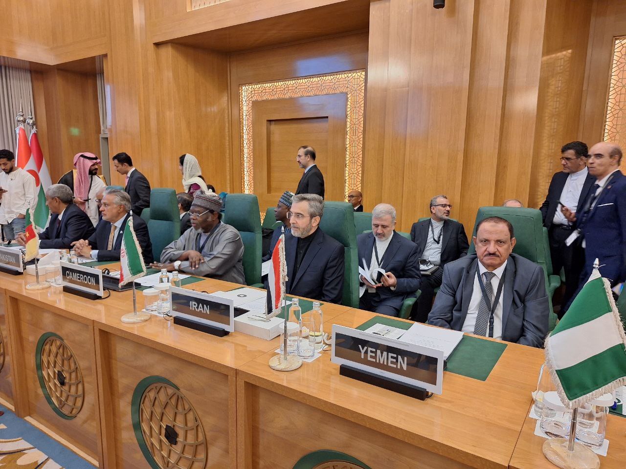 علی باقری سرپرست وزارت خارجه ایران : ابتدا از اعضای سازمان همکاری اسلامی بخاطر موافقت با درخواست جمهوری اسلامی ایران و دولت فلسطین برای برگزاری این نشست و از دبیرکل محترم سازمان و همکاران ایشان برای سازماندهی شایسته آن تقدیر میکنم.