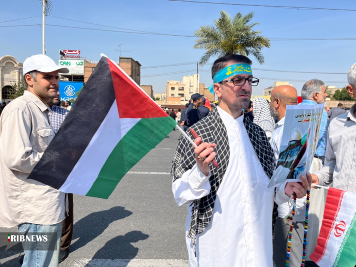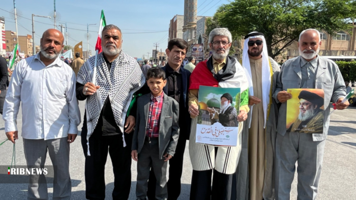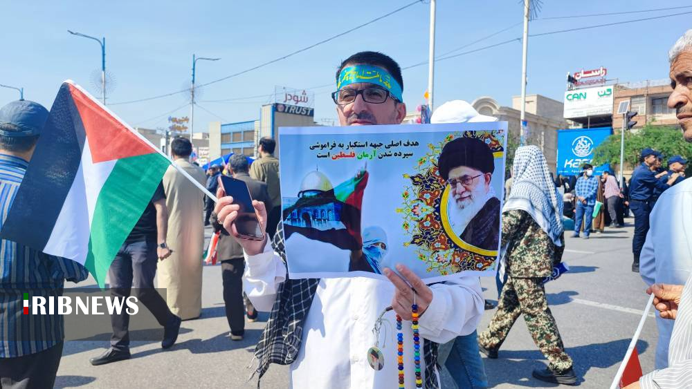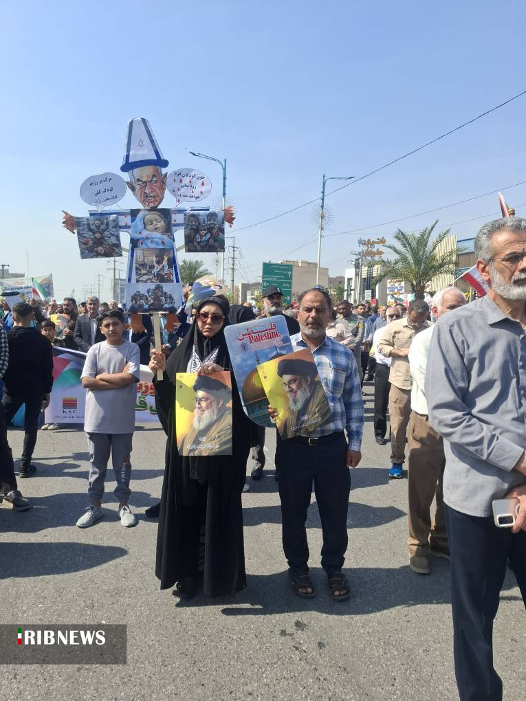 مردم روزه‌دار اهواز در این راهپیمایی با حضور خود حمایت همه جانبه از مردم مظلوم فلسطین را اعلام کردند.