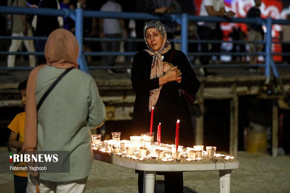 ساکنین و گردشگران جزیره کیش، شامگاه یکشنبه ۷ اردیبهشت ۱۴۰۴، به یاد درگذشتگان حادثه بندرعباس، در ساحل اسکله تفریحی کیش گرد هم آمدند و یاد درگذشتگان این حادثه را با روشن کردن شمع، نواختن سنج و دمام و سر دادن نوحه گرامی داشتند و برای مصدومان آن، دست به دعا بر داشتند.