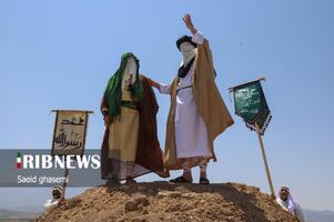نمایش باز سازی واقعه غدیر خم با حضور هنرمندان وهیتهای شبیه خوان در مقابل مسجد مقبره شهرستان اهربرگزار شد