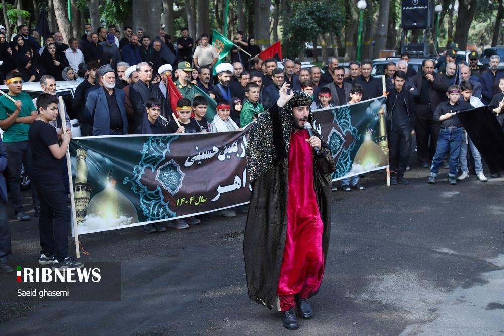مراسم جاماندگان اربعین حسینی ۱۴۰۴ شهرستان اهر، صبح امروز ۲۳ مردادماه حد فاصل مزار شهدای گمنام واقع در بقعه شیخ شهاب الدین اهری تا گلزار شهدای اهر برگزار شد.