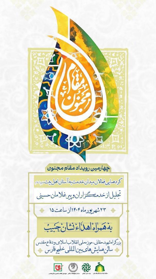 چهارمین رویداد ملی «مقام مجنون» با هدف تکریم پیرغلامان و فعالان عرصه هیأت، با حضور مسئولان کشوری و لشکری، پیشکسوتان هیأت، در محل موزه ملی انقلاب اسلامی و دفاع مقدس برگزار خواهد شد.