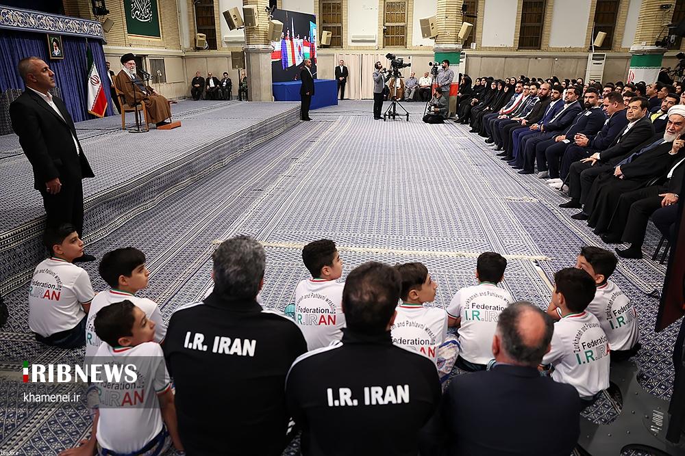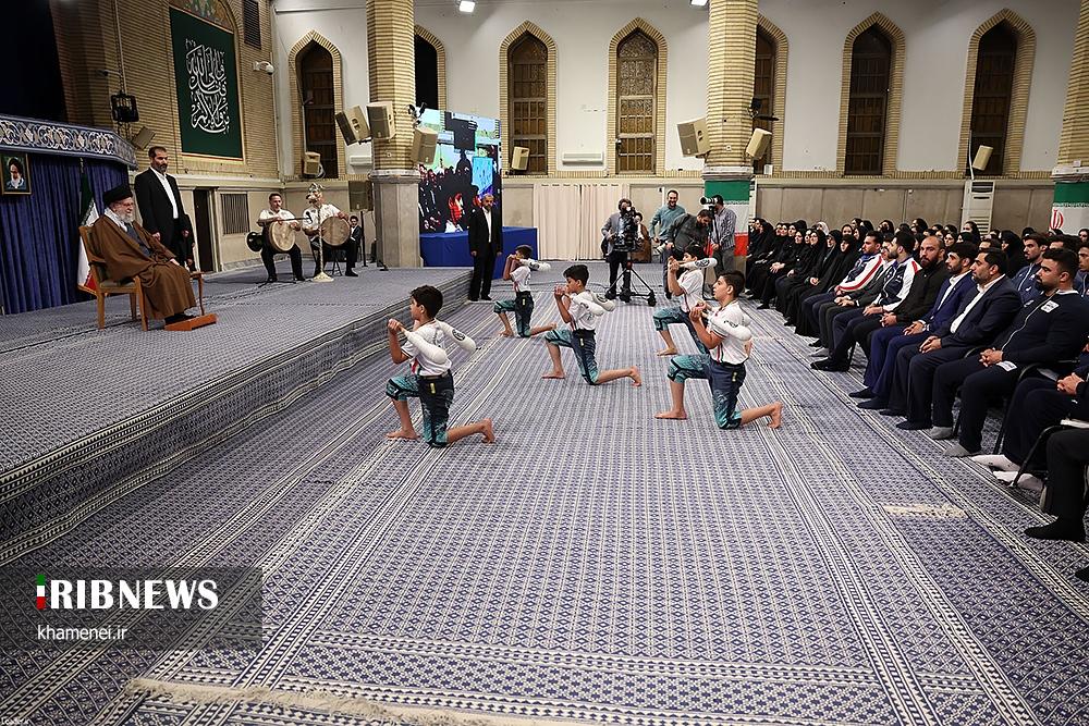 حضرت آیت‌الله خامنه‌ای رهبر معظم انقلاب اسلامی صبح امروز ۲۸ مهر ماه ۱۴۰۴ در دیدار صد‌ها نفر از قهرمانان رشته‌های مختلف ورزشی و مدال‌آوران المپیاد‌های علمی جهانی، این افتخارآفرینان را مظهر رشد و تجلّی قدرت ملی خواندند و تأکید کردند: شما ثابت کردید جوانان امیدآفرین ایران عزیز به عنوان «نماد ملت»، این قدرت را دارند که بر قله‌ها بایستند و ذهن‌ها و چشم‌های جهان را متوجه فضای روشن ایران کنند.