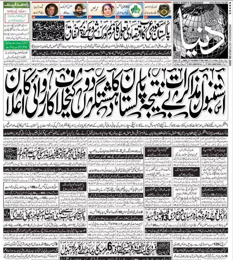 - مذاکرات پاکستان و افغانستان در استانبول پس از چهار روز بی نتیجه پایان یافت