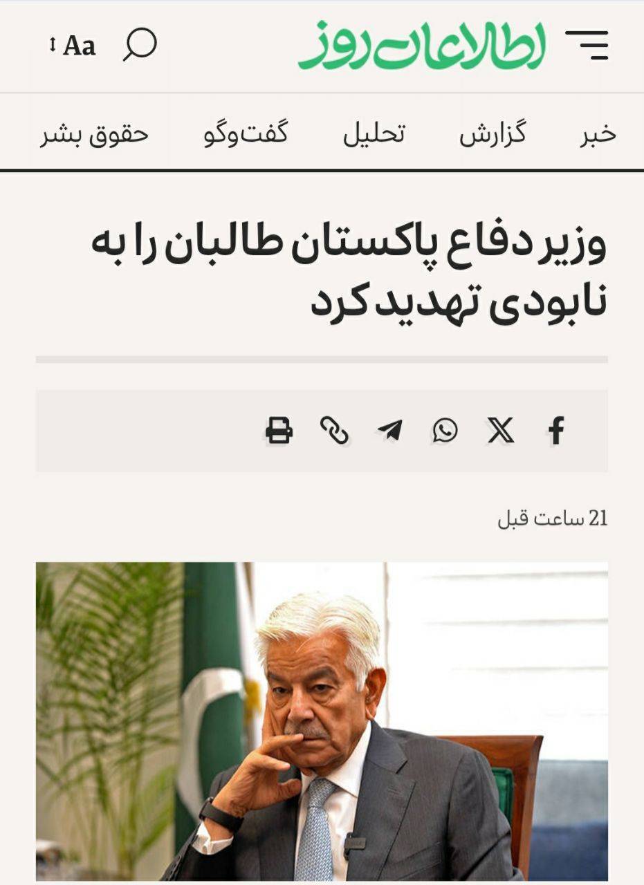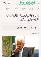 - وزیر دفاع پاکستان، طالبان را به نابودی تهدید کرد.