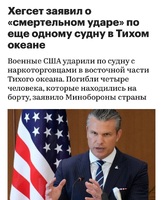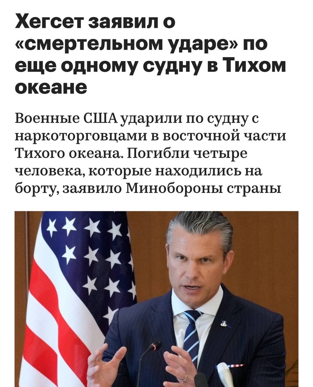 ⁃ پیت هگزت وزیر جنگ آمریکا از «ضربهٔ مرگبار» به یک کشتی دیگر در اقیانوس آرام خبر داد.