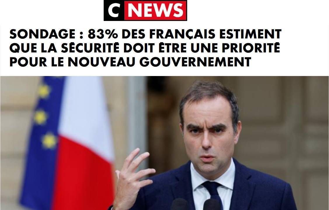 –در نظرسنجی‌های جدید موسسه آماری س اس آ، ۸۳ درصد مردم فرانسه معتقدند دولت باید امنیت در جامعه را در اولویت قرار دهد. این خواسته ناشی از افزایش خشونت و ناامنی در جامعه است.