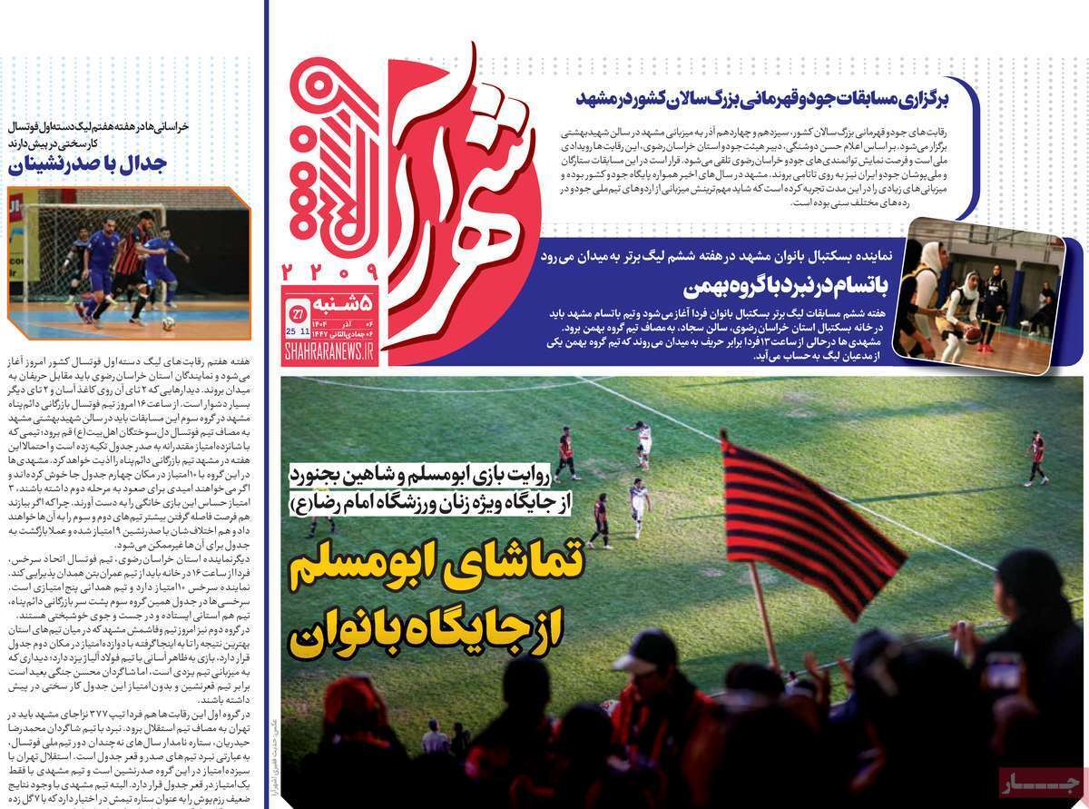 نیم صفحه نخست روزنامه‌های ورزشی ۶ آذر